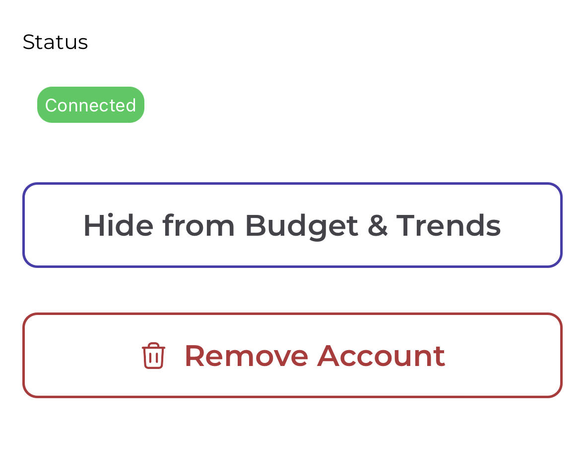 Piere makes hiding these accounts simple while maintaining their connections to the app. Likewise, you can unhide an account just as simply.